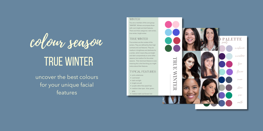 The guide includes a detailed breakdown of your colour season, including palettes with example colours, moodboards and palette inspiration.